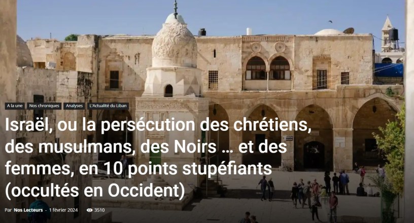 Israël, ou la persécution des chrétiens, des musulmans, des Noirs … et des femmes, en 10 points stupéfiants (occultés en Occident) par Ilyes Zouari