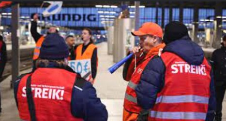 أضرب عاملو السكة الحديدية بألمانيا للمرة الخامسة بين تشرين الثاني/نوفمبر 2023 والسابع من آذار/مارس 2024، من أجل زيادة الأُجُور، لتدارك ارتفاع الأسعار، وتحسين ظروف العمل، وشملت حركات الإضراب كذلك قطاع النقل الجوي لنفس الأسباب، ولم تنطلق سوى نسبة 20% من قطارات المسافات الطّويلة بين صباح الخميس 7 آذار/مارس ومنتصف نهار الجمعة الثامن من آذار/مارس 2024، فيما أعلنت شركة لوفتهانزا ( التي تضاعفت أرباحها) إن إضراب موظفي الأرض إلى شَلَلِ ما بين 80% و 90% من حركة النقل الجوي بالمطارات الألمانية الرئيسية، من يوم الخميس 07 إلى صباح السبت 09 آذار/مارس 2024، وسبق أن أضرب الطيارون وعملة مراقبة الأمتعة وعملة الجو، في فترات سابقة، ضمن حركة اجتماعية مَطْلَبِيّة تجسّدت في إضرابات محلات السوبر ماركت والخدمات وموظفي المؤسسات العمومية الإقليمية والمَحَلِّية…