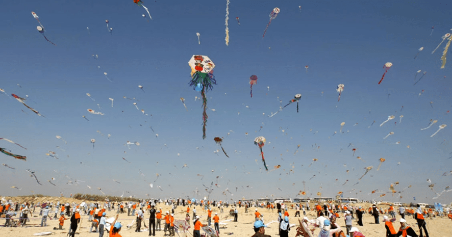 Il y a un contexte supplémentaire pour lire les cerfs-volants à Gaza comme des messages d’un peuple qui refuse de se soumettre. En 2011, 15 000 enfants palestiniens sur une plage de Gaza ont battu le record du monde du plus grand nombre de cerfs-volants pilotés en même temps. Beaucoup de cerfs-volants comportaient des drapeaux et des symboles palestiniens, ainsi que des souhaits de paix et d’espoir. Une jeune fille de onze ans, Rawia, qui a fait son cerf-volant aux couleurs du drapeau palestinien, a déclaré : « Quand je le fais flotter, j’ai l’impression de hisser mon pays et mon drapeau dans le ciel. » Le documentaire de 2013 « Flying Paper », réalisé par Nitin Sawhney et Roger Hill, raconte l’histoire de certains des jeunes cerfs-volants. « Lorsque nous faisons voler des cerfs-volants, nous avons l’impression que c’est nous qui volons dans le ciel. Nous sentons que nous avons la liberté. Qu’il n’y a pas de siège sur Gaza. Lorsque nous faisons voler le cerf-volant, nous savons que la liberté existe. Plus tôt cette année, des cerfs-volants ont été lancés lors de manifestations de solidarité qui ont eu lieu dans le monde entier, exprimant et amplifiant un espoir et une volonté de liberté palestinienne.
