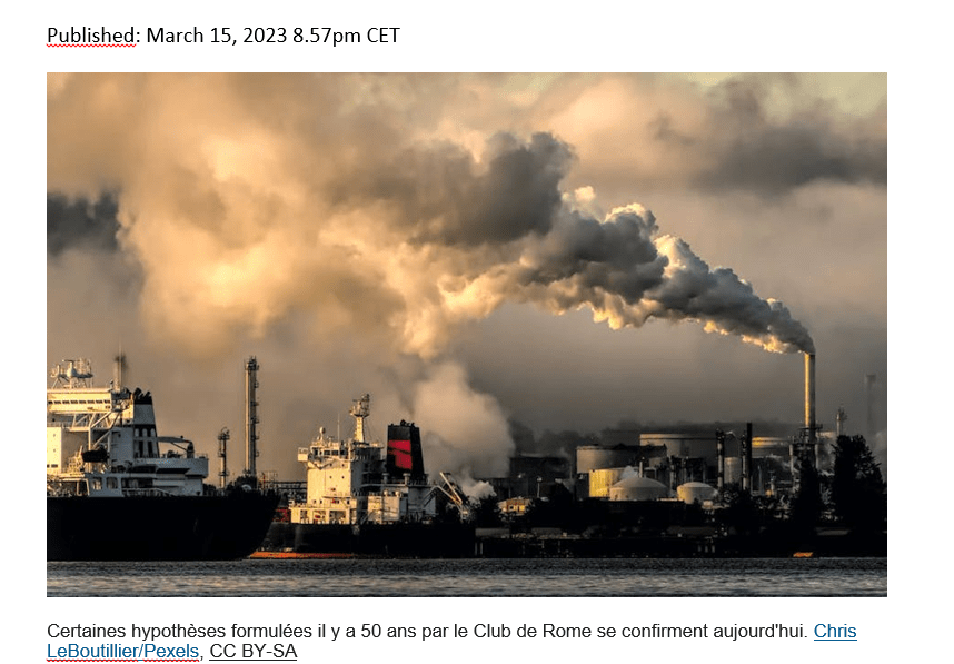 Si les analyses du rapport Meadows pouvaient être considérées comme isolées dans les années 1970, les choses sont très différentes dans les années 2020 car les constats se recoupent et ils émanent de multiples disciplines. Plus personne ne peut aujourd’hui ignorer les synthèses que constituent les rapports du Groupe d’experts intergouvernemental sur l’évolution du climat (GIEC) qui sont sans équivoque.