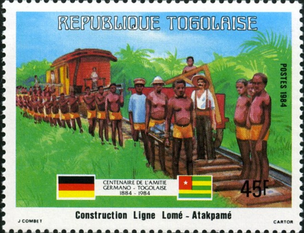 Elle encourage ses citoyens à s’installer dans sa colonie, le Togoland, en leur offrant des concessions à des conditions très avantageuses. Elle fait construire les infrastructures pour l’exploitation du coton et du cacao, des lignes de chemin de feren recourant massivement aux travaux forcés. Les Allemands en font une Musterkolonie ,une « colonie modèle » où doivent régner l’équilibre, la prospérité, où la langue allemande n’est pas imposée aux populations locales. La politique coloniale allemande est fondée sur la conviction que les races sont différentes et que la race blanche est supérieure aux autres. Dans cette logique, elle ne doit donc pas considérer l’indigène comme leur frère noir.