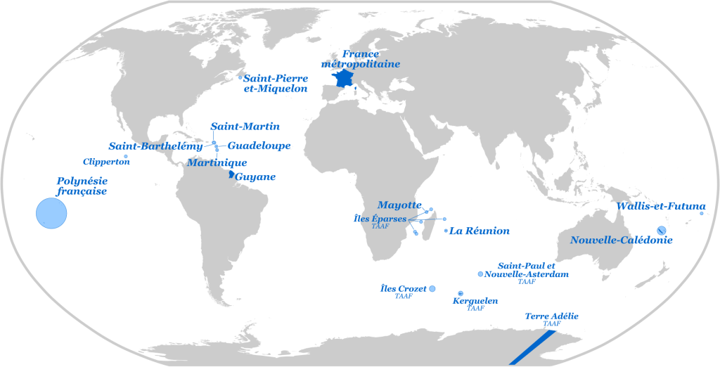 La France d’outre-mer comprend les territoires de la République française éloignés de la France métropolitaine, en Europe.