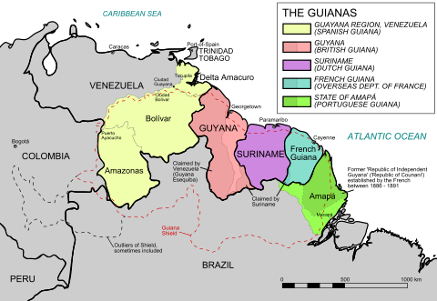 Historiquement, sur le plateau de Guyane, outre les Français, se sont installés:les Britanniques(Guyana) ;les Espagnols(Guyane vénézuélienne et Guayana Esequiba) ; les Néerlandais(Suriname) ; les Portugaise (Amapá).