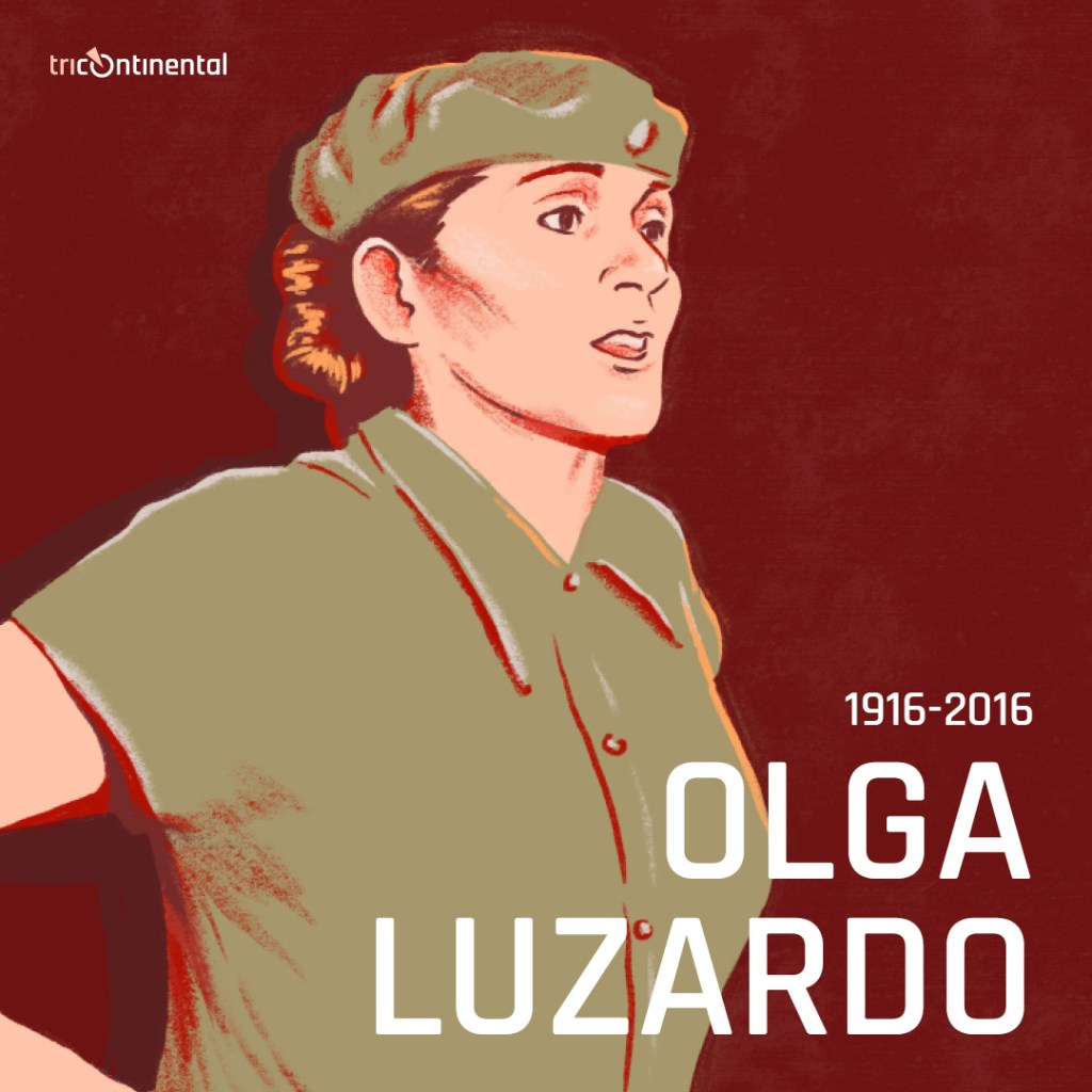 À l’âge de douze ans, Olga Luzardo (1916-2016) a rejoint un groupe marxiste dans la ville de Maracaibo, dans le nord-ouest du pays. En 1931, elle devient l’une des fondatrices du Parti communiste du Venezuela (Partido Comunista de Venezuela, PCV). La jeune Luzardo enseignait à l’école Ho Chi Minh du PCV et emmenait son « école itinérante » à travers le Venezuela pour apporter le marxisme au peuple. En 1937, elle participe au Congrès des femmes du Venezuela (Congreso de Mujeres), issu des groupes culturels féminins du PCV. Arrêté pendant la dictature de Marcos Pérez Jiménez, Luzardo est exilé en Union soviétique puis rentre au Venezuela en 1958. Elle avait plusieurs pseudonymes, tels que « Jorge », qu’elle a utilisé dans sa lutte contre la bourgeoisie vénézuélienne, et « Petrovna », inspirée par la Révolution d’Octobre, sous laquelle elle s’est forgé une réputation de journaliste et de poète dans son désir de créer un nouveau langage pour la rébellion. Alors qu’elle était en prison entre 1950 et 1952, elle a écrit les poèmes qui ont été publiés plus tard dans le recueil Huellas frescas (1998), dont l’un exhorte sa fille Iguaraya Pérez, et en fait toutes les filles, à être un « soldat », un combattant pour la justice :