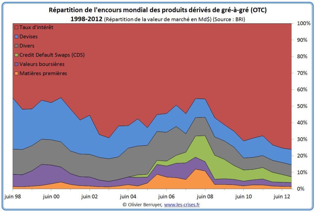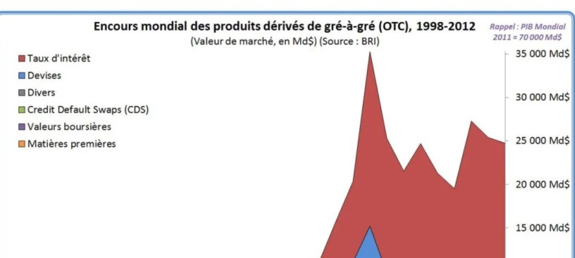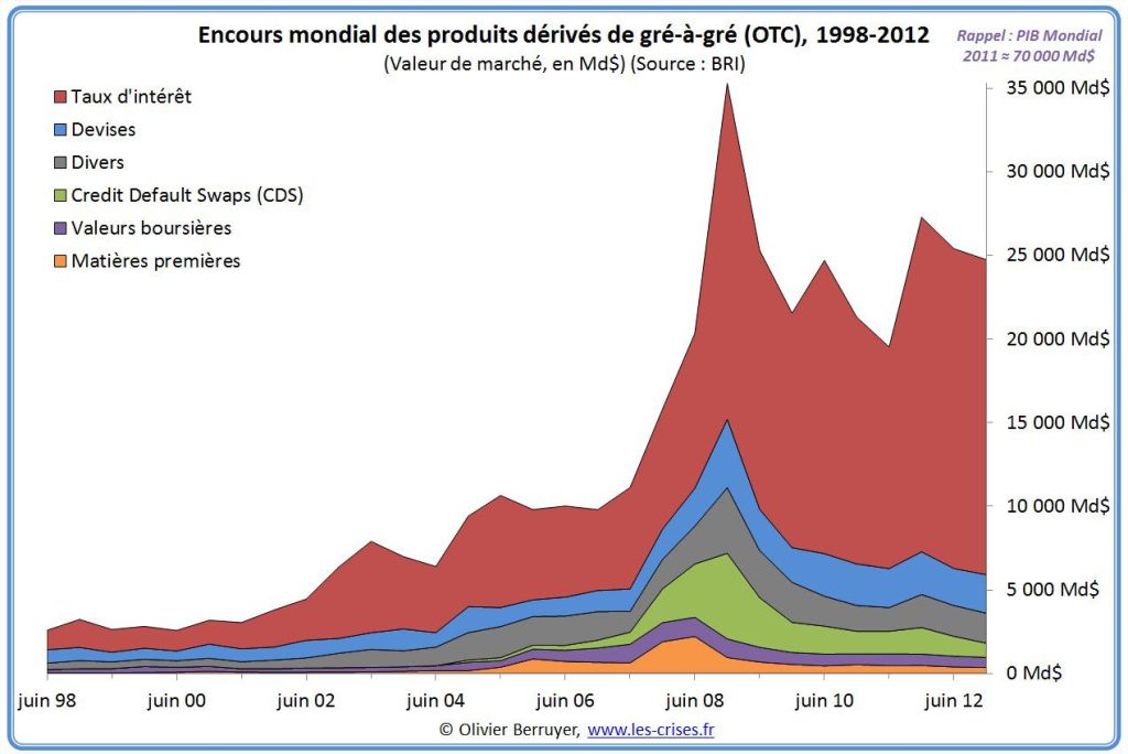 On note que la valeur de ce marché est égale au tiers de toute l’économie réelle – après en avoir atteint la moitié en 2008. Cela montre bien à quel point tout le système à été perverti.