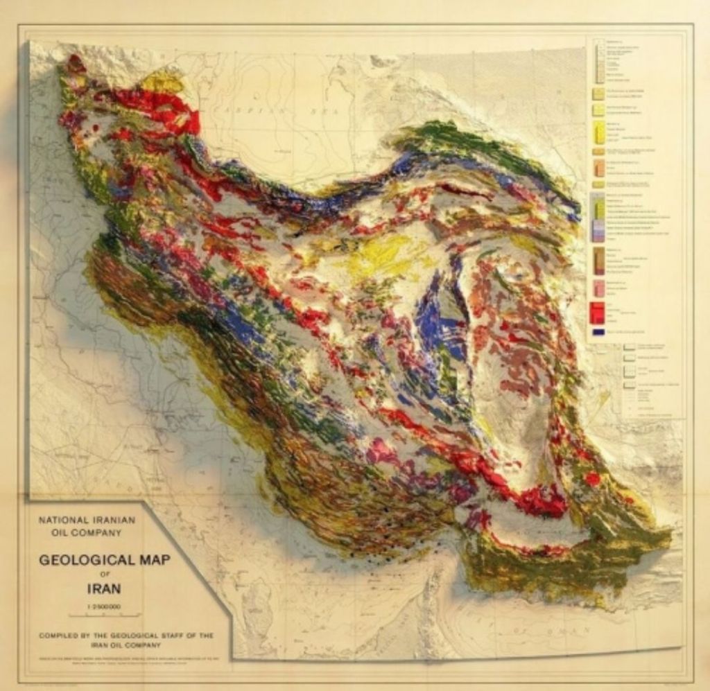 L’Iran lui-même est très montagneux. Des chaînes de montagnes occupent également le centre du pays (un plateau dont les plus hauts sommets culminent à près de 4500 mètres au-dessus du niveau de la mer), et entre les crêtes montagneuses se trouvent des bassins salins avec des structures de diapir (dômes de sel) auxquels sont liés des gisements de pétrole et de gaz (l’Iran possède les troisièmes ou quatrièmes réserves mondiales de pétrole après le Venezuela, le Canada et l’Arabie saoudite, et les deuxièmes réserves mondiales de gaz naturel après la Russie, d’après les estimations de Gazprom). Les déserts de sel et de sable sont inhabitables et représentent environ un tiers du pays.