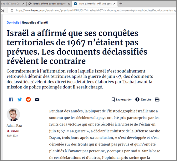 [49] – Voir Link : Israel claimed its 1967 land conquests weren’t planned. Declassified documents reveal otherwise – Israel News – Haaretz.com