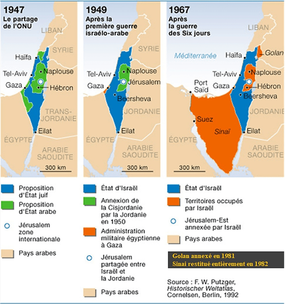 L’entité sioniste est depuis 1948 toujours en quête de nouveaux territoires, à posséder par la force militaire et par le nettoyage ethnique, au mépris du Droit international (jusqu’à présent l’entité sioniste ne dispose pas de frontières définitives).