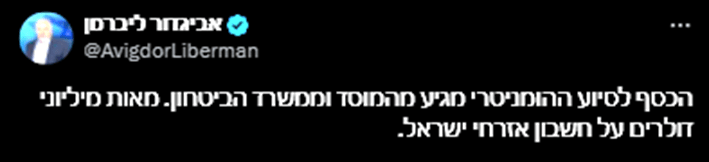 « L’argent destiné à l’aide humanitaire provient du Mossad et du ministère de la Défense. Des centaines de millions de dollars sont dépensés aux dépens des citoyens israéliens »