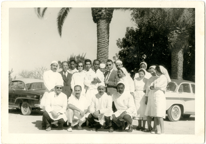 Frantz Fanon et son équipe médicale à l’hôpital psychiatrique de Blida-Joinville en Algérie, où il a travaillé de 1953 à 1956. Frantz Fanon Archives / IMEC