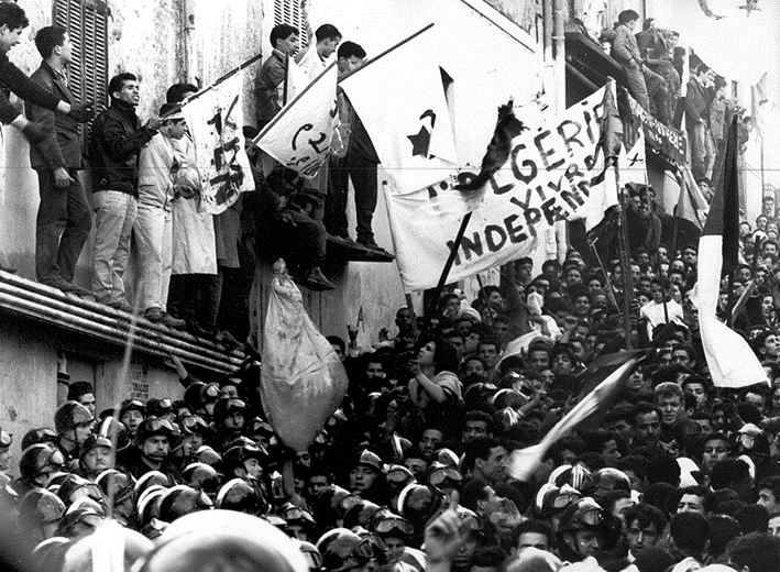 ( en réalité, cette photo a été prise dans mon quartier de Belcourt, raison pour laquelle je la reconnais, le 11 décembre pendant les manifestions de 1960 qui ont avorté le projet Gaullisite. J’étais présent à ce moment de la prise en photo. Mohamed Bouhamidi)