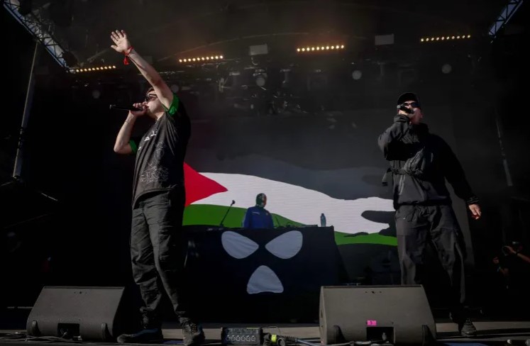 قبل ذلك أعلنت شرطة لندن يوم 22 أيار/مايو 2025 اعتقال ليام أوهانا المعروف باسمه الفني « مو شارا »، أحد أعضاء فرقة الراب الإيرلندية الشمالية » ( نيكاب) بموجب قانون مكافحة الإرهاب لسنة 2000، بتهمة « ارتكاب جريمة إرهابية، تتمثل في التّلويح بعلم حزب الله خلال عرض موسيقي في لندن، خلال شهر تشرين الثاني/نوفمبر 2024 » أي قبل أكثر من ستة أشهر من الحدث، ونفت فرقة نيكاب هذه « الجريمة » وأعلنت في بيانها آنذاك « إن 14 ألف طفل على وشك الموت جوعا في غزة (…) لكن ينحصر تركيز المؤسسة السياسية البريطانية علينا »، هذه المؤسسة السياسية التي تُساعد وتُشارك في ارتكاب جرائم الإبادة والتّجويع والحصار والتّخريب، ومثل ليام أوهانا (مو شارا ) أمام المحكمة في لندن بتاريخ 18 حزيران/يونيو 2025 وتم تأجيل الجلسة إلى يوم 20 آب/أغسطس 2025 ( فترة العطلة الصّيفية التي ينخفض خلالها النشاط السياسي ) وتعرضت الفرقة التي تضم ثلاثة أعضاء منحدرين من بلفاست بإيرلندا الشّمالية، والمعروفة بمواقفها المؤيدة لحقوق الشعب الفلسطينيي، للتّشويه من قِبَل الحكومة البريطانية والمنظمات الصهيونية بعد اتهام الكيان الصهيوني بارتكاب إبادة جماعية ضد الشعب الفلسطيني في غزة، خلال مهرجان «كواتشيلا» في كاليفورنيا.